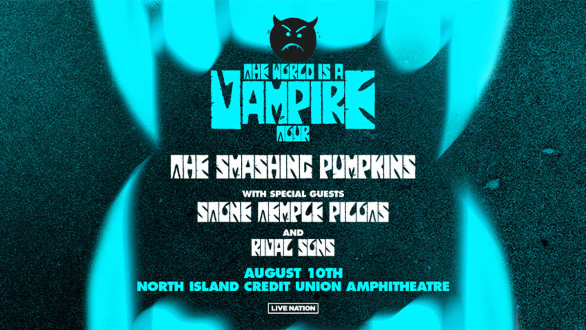 The Smashing Pumpkins: The World Is A Vampire Tour with special guests Stone Temple Pilots and Rival Sons hits North Island Credit Union Amphitheatre Thursday, August 10th! Presale starts Wednesday, March 29th at 10am and public onsale starts Friday, March 31st at 10am at livenation.com.